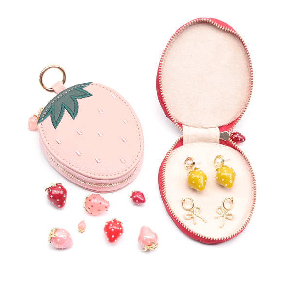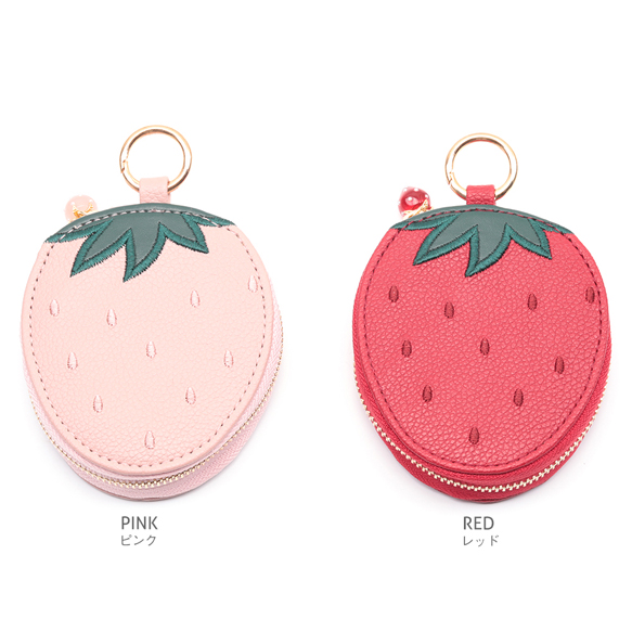 キーホルダーポーチ いちごポーチ イチゴ 苺 小物入れ アクセサリーケース 約2.5×8.5×10cm(1ヶ)