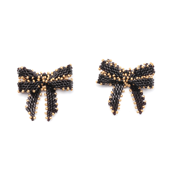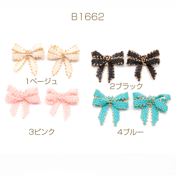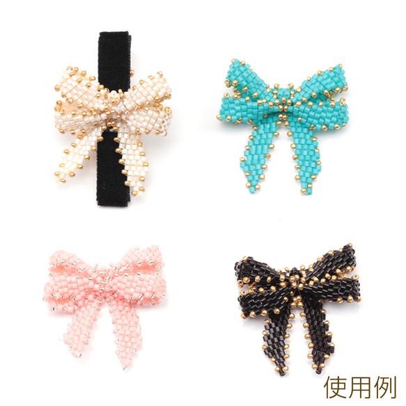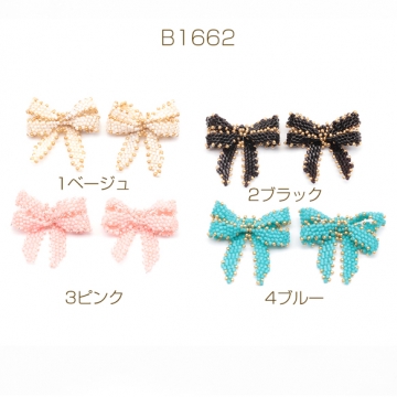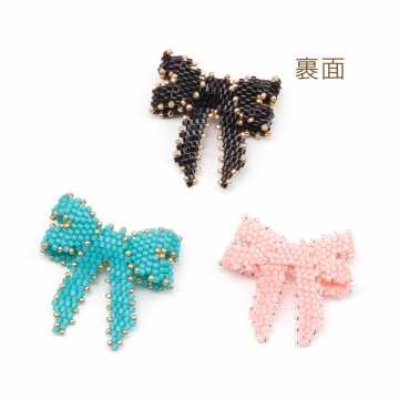 ビーズ編みパーツ リボンビーズパーツ ダブルリボン 髪飾り 服飾 手芸パーツ ビーズ編みチャーム 約32×36mm(1ヶ)