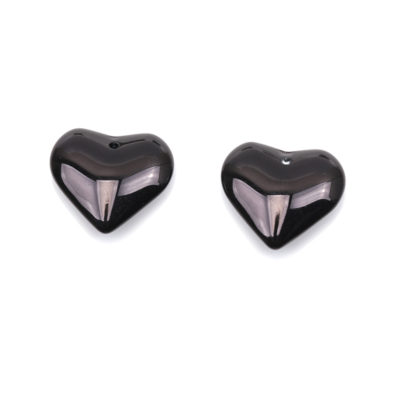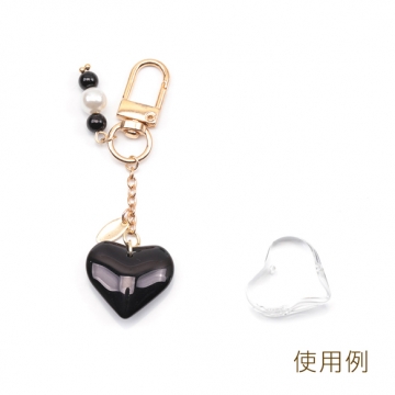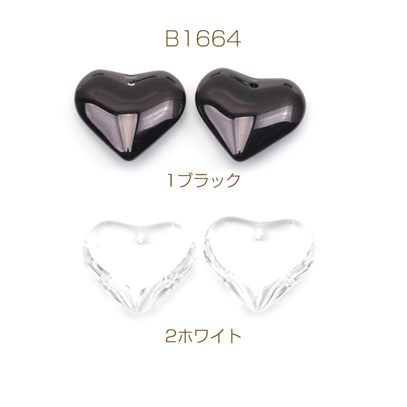 ガラスチャーム ハート 1穴 ブラック/ホワイト 立体 ガラスパーツ 約23×25mm(2ヶ)