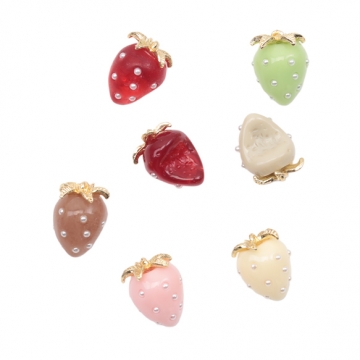 いちごチャーム かじり苺 パール付き かじった苺 食べかけ イチゴ カン付き 樹脂チャーム 約12×16mm(2ヶ)