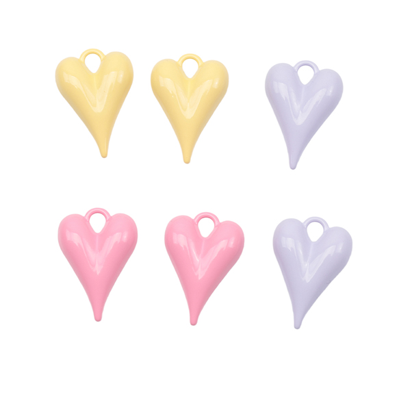 ハートチャーム ぷっくり ハート カラフル カン付き 立体 メタルチャーム 約20×28mm(1ヶ)