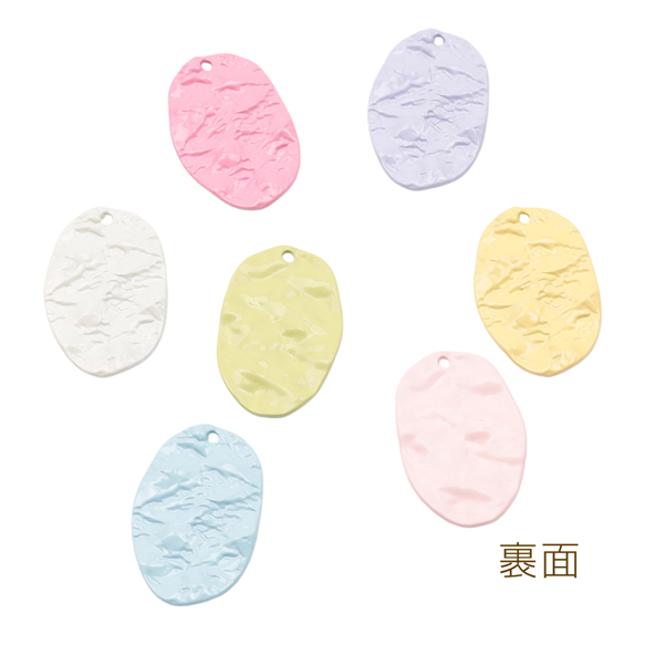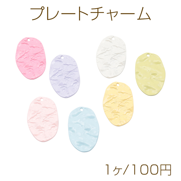 プレートチャーム カラフル 不規則オーバル 表面凹凸加工 1穴 メタルチャーム 約26×40mm(1ヶ)