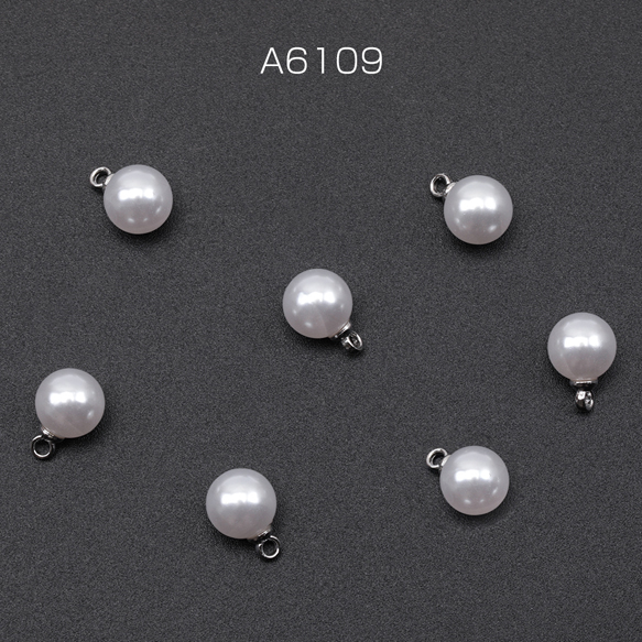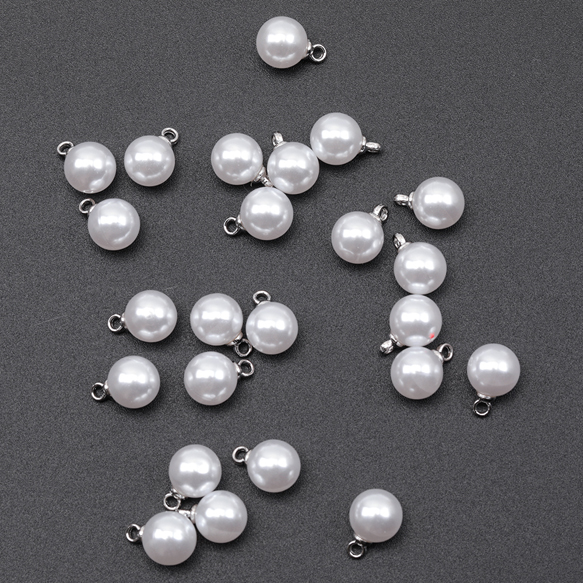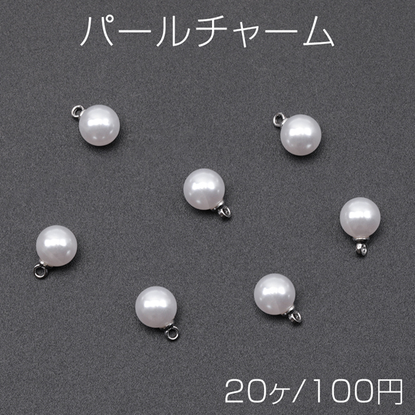 パールチャーム ABSパール ラウンド 一粒 ロジウム カン付き 樹脂チャーム 約8mm(20ヶ)
