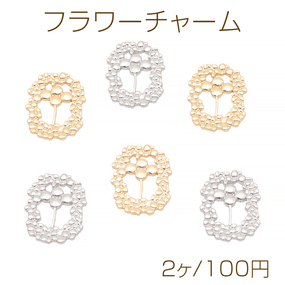 フラワーチャーム 四弁化 お花 フレームパーツ カンなし 半面 メタルチャーム 約18×24mm(2ヶ)