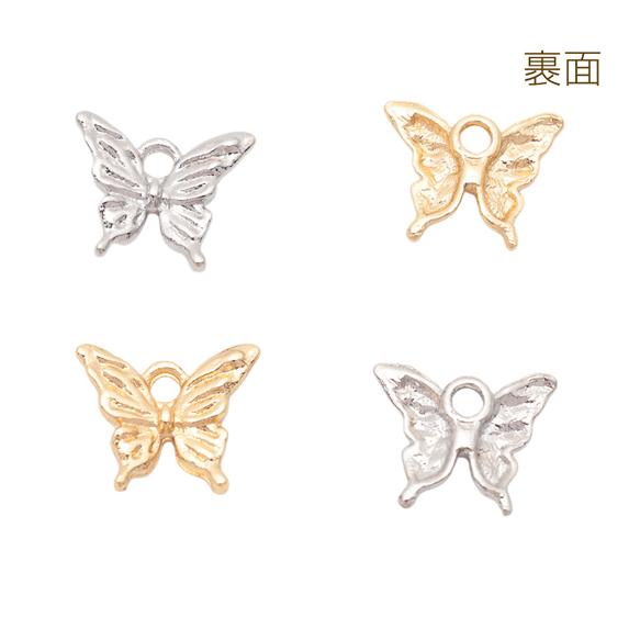 蝶チャーム 蝶々 ちょうちょ バタフライ カン付き 半面 メタルチャーム 約10×11mm(4ヶ)