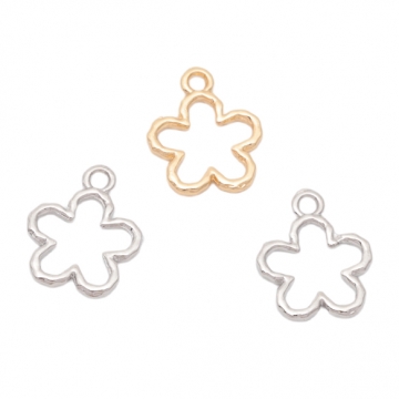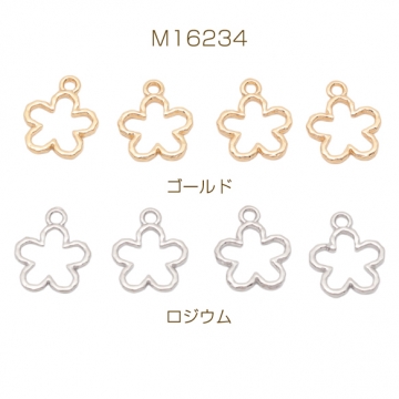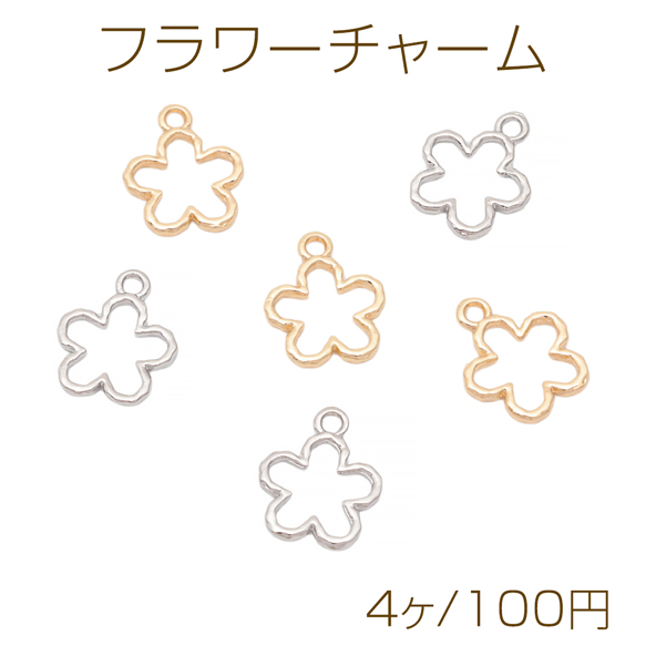 フラワーチャーム 五弁花 お花 手書風 カン付き メタルフレームチャーム 約11×14mm(4ヶ)