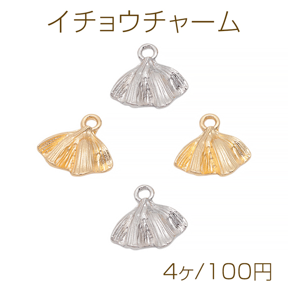 イチョウチャーム イチョウの葉 リーフ 葉っぱ 秋 紅葉 フラワーチャーム メタルチャーム 約12×13mm(4ヶ)