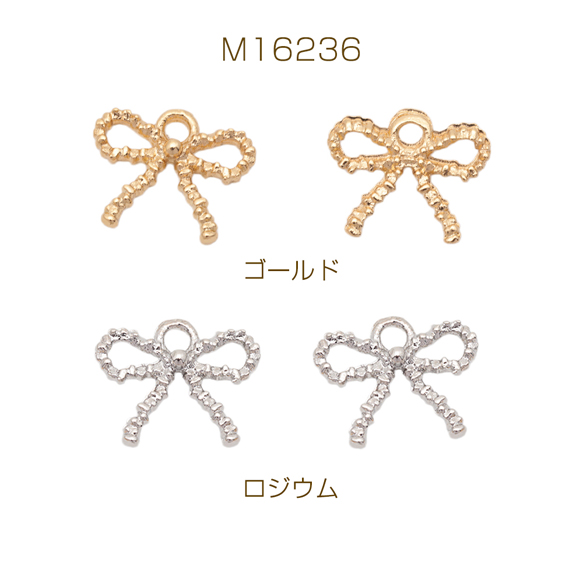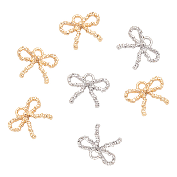 リボンチャーム 蝶々結び 立体 メタルチャーム 約10×12mm(4ヶ)
