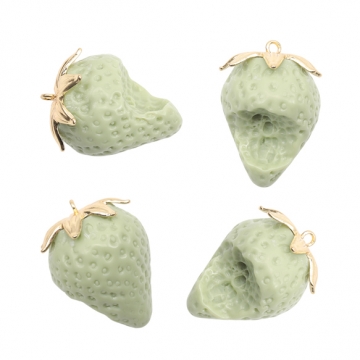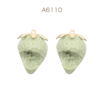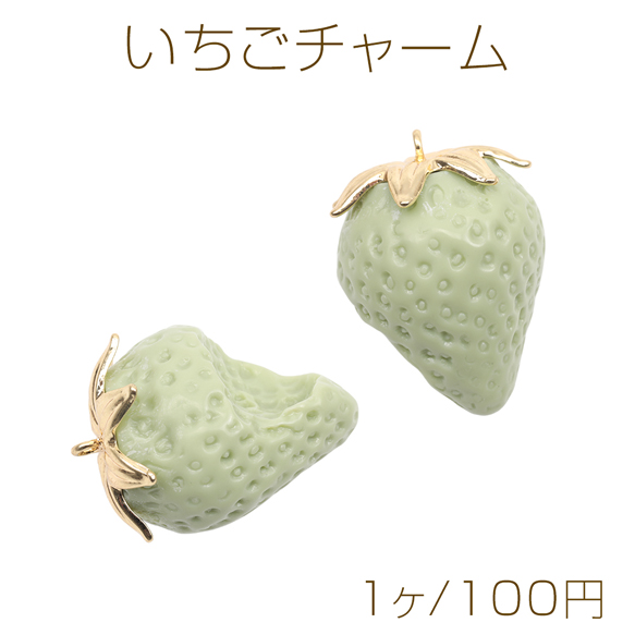 いちごチャーム かじり苺 抹茶グリーン かじった苺 食べかけ イチゴ カン付き 樹脂チャーム 約27×39mm(1ヶ)
