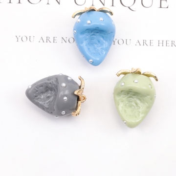 いちごチャーム かじり苺 パール付き かじった苺 食べかけ イチゴ カン付き 樹脂チャーム 約17×23mm(2ヶ)