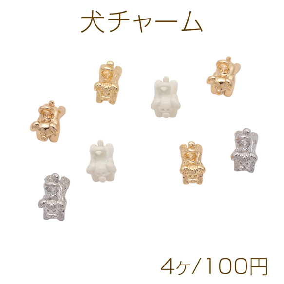 犬チャーム いぬ イヌ ミニチュア 動物 アニマル 立体 カン付き メタルチャーム 約7×11mm(4ヶ)