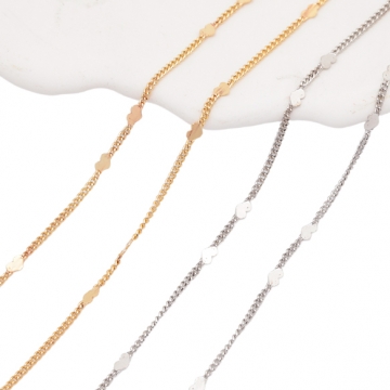 メタルデザインチェーン ハートプレート ハンドメードチェーン メタルチェーン 銅製 幅約1.2mm(約1m)