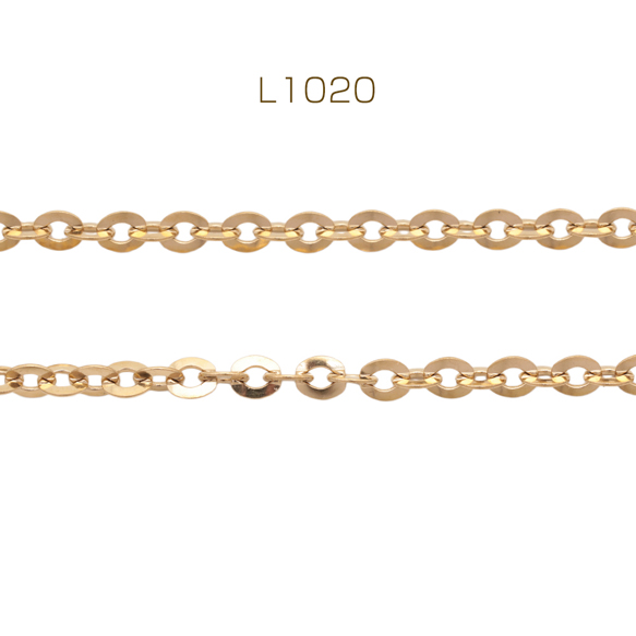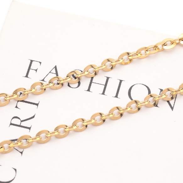 ステンレスチェーン あずき 円盤型 ゴールドメッキ ハンドメードチェーン メタルチェーン 幅約4mm(約10cm)