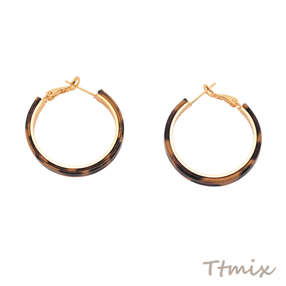 デザインピアス ヒョウ柄 レオパルド柄 フープピアス メタルピアス 厚さ約4mm 直径約33mm(1ペア)