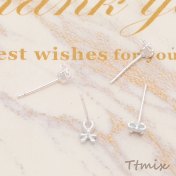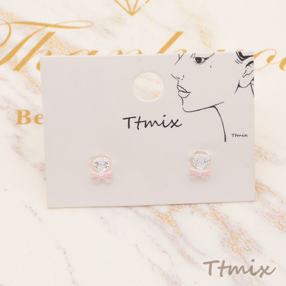 デザインピアス リボンモチーフ ストーン付き スタッドピアス メタルピアス 約4×5mm(1ペア)