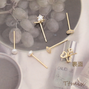 デザインピアス リボンモチーフ ABSパール ハート スタッドピアス メタルピアス 3種(1セット)