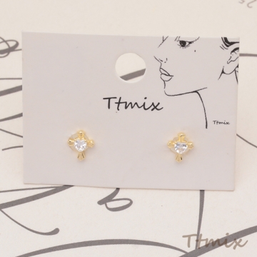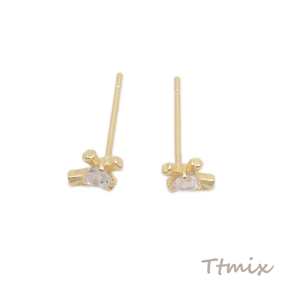 デザインピアス クロス 十字架 ハートのストーン付き スタッドピアス メタルピアス 約5×6mm(1ペア)