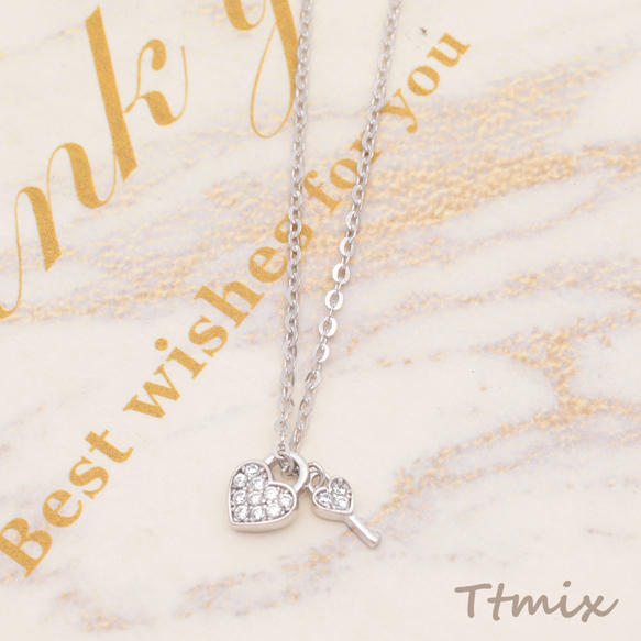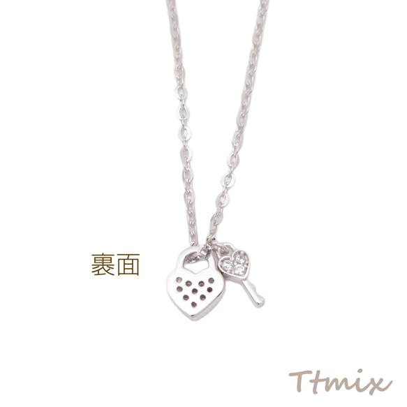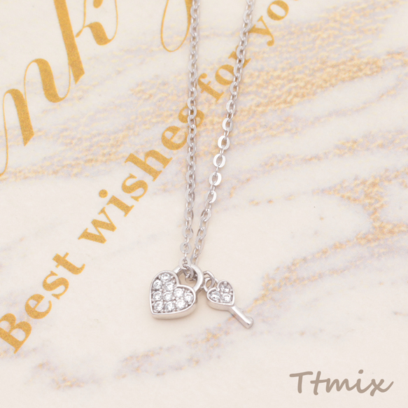 ネックレス ハートの鍵 ロック カギ付き あずきチェーン シルバーカラー 長さ約45cm(1本)