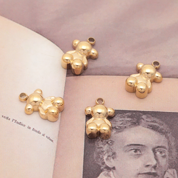 メタルチャーム くまモチーフ キュートアニマルパーツ ステンレス製 カン付き 6×10mm (1 ヶ)