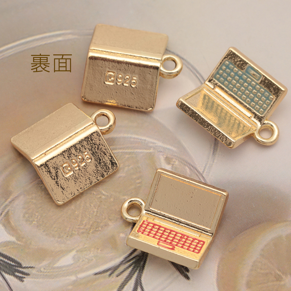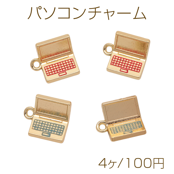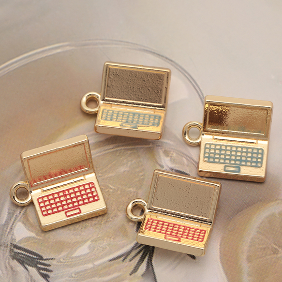 パソコンチャーム ノートパソコン PC 直線的 ビジネス ミニチュア エポチャーム メタルチャーム 約15×16mm(4ヶ)