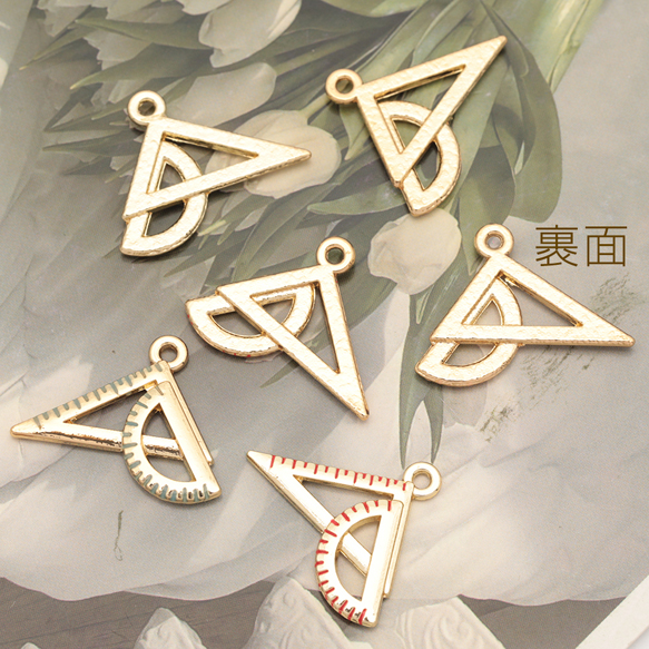 定規チャーム 三角定規 分度器 文房具 ミニチュア エポチャーム メタルチャーム 約20×22mm(4ヶ)