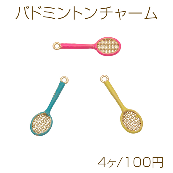 バドミントンチャーム ラケット ミニチュア スポーツチャーム エポチャーム メタルチャーム 約9×30mm(4ヶ)