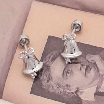 バーベルピアス リボンとベル 半面 鈴 鐘 ステンレス製 メッキ加工 デザインピアス 約7×8mm( 1ペア)
