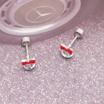 バーベルピアス 赤いリボンとベル 立体 鈴 鐘 ステンレス製 メッキ加工 デザインピアス 約6×6mm( 1ペア)