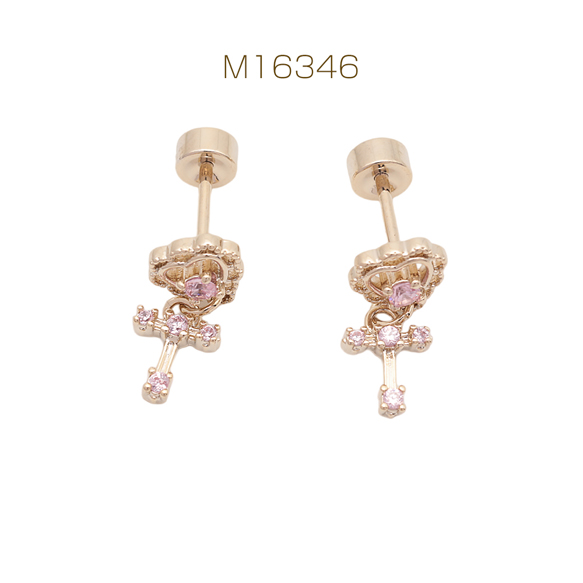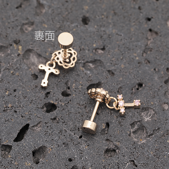バーベルピアス ハート&クロス 十字架 ステンレス製 メッキ加工 デザインピアス 約6×7mm( 1ペア)