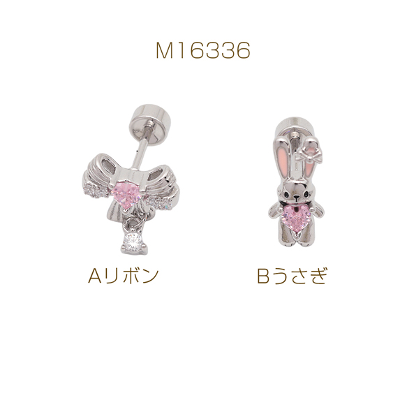 卸売バーベルピアス リボン/うさぎ ピンクストーン付き ステンレス製 メッキ加工 デザインピアス 約8×10mm( 1ペア)