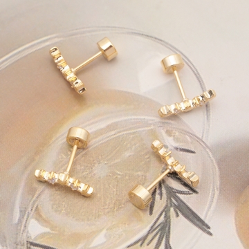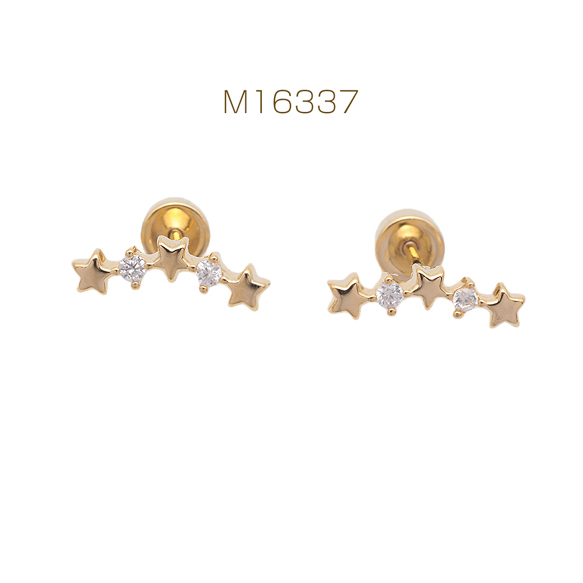 卸売バーベルピアス 星とラインストーン ステンレス製 メッキ加工 デザインピアス 約4×11mm( 1ペア)