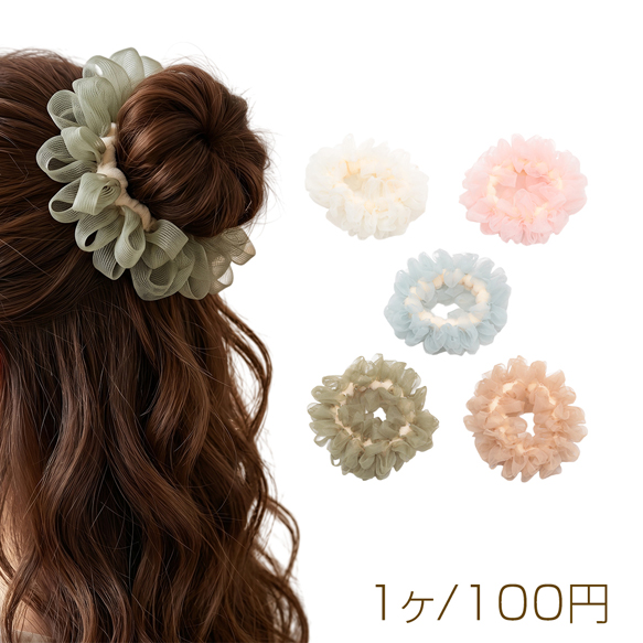 ヘアゴム 透け感 チュール メッシュ レース 髪飾り 髪留め ヘアゴム ヘアアクセサリー 約6cm(1ヶ)