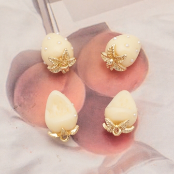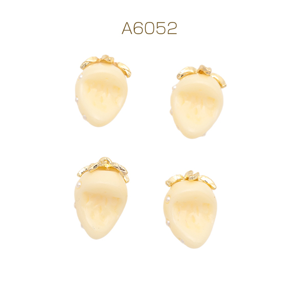 いちごチャーム パール付き かじり苺 かじった苺 食べかけ イチゴ カン付き アイボリー 樹脂チャーム 約9×13mm(4ヶ)