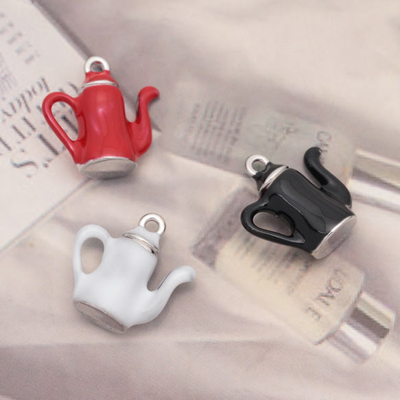 エポチャーム シルバー ポット ケトル ティータイム カフェ 食器 ミニチュア 立体 メタルチャーム 約16×16mm(1ヶ)