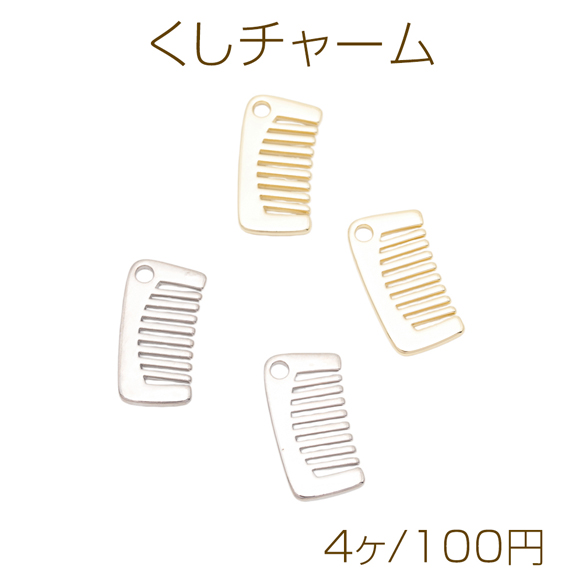 くしチャーム 櫛 コーム ブラシ ファッションチャーム チャームパーツ メタルチャーム 約12×22mm(4ヶ)