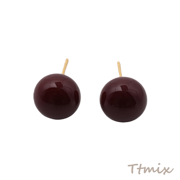 デザインピアス キャンディ 飴玉 丸玉 ワインレッド メタルピアス スタッドピアス 約12mm(1ペア)