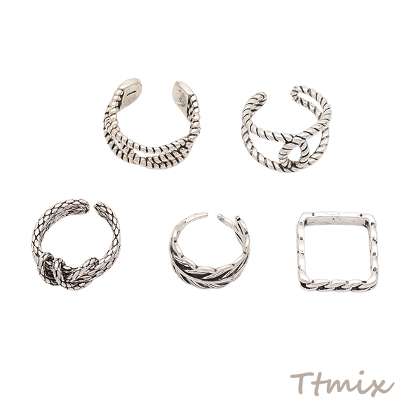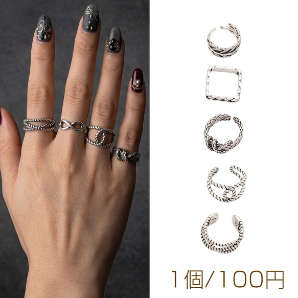 デザインリング ツイスト ヴィンテージ風 アンティークシルバー メタルリング オープンリング 全5種(1個)