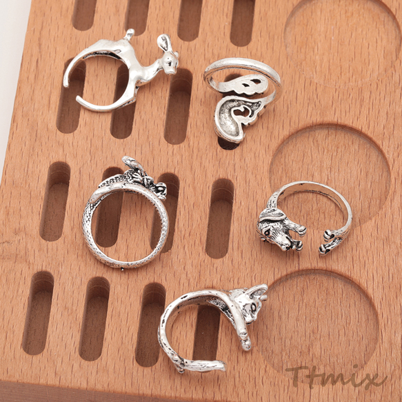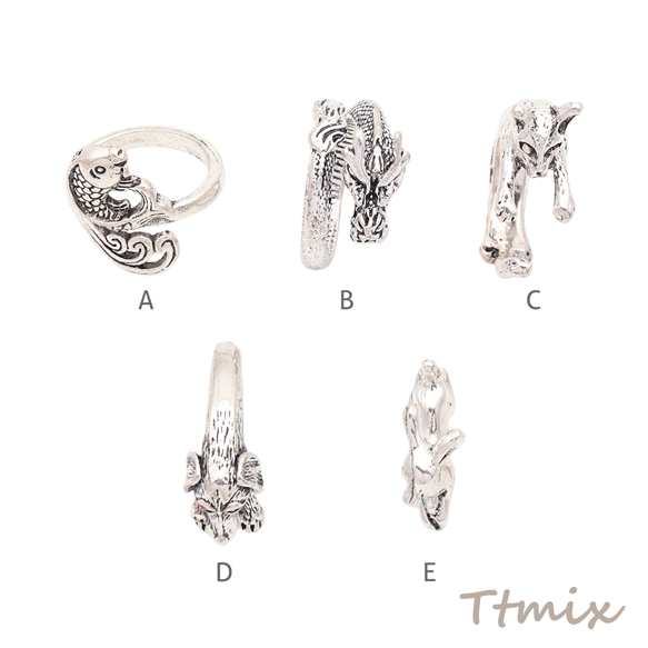 デザインリング ユニーク アニマルデザイン ヴィンテージ風 アンティークシルバー メタルリング オープンリング 全5種(1個)