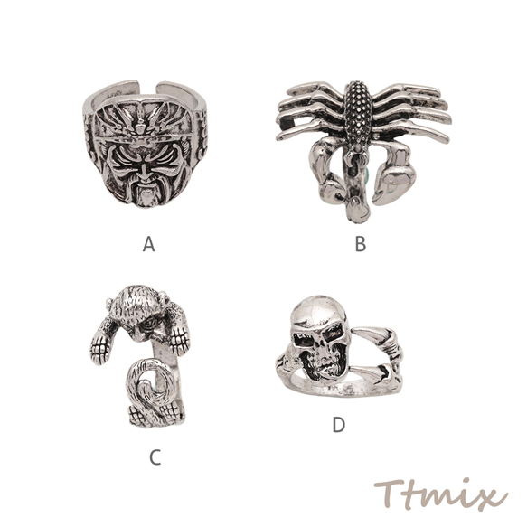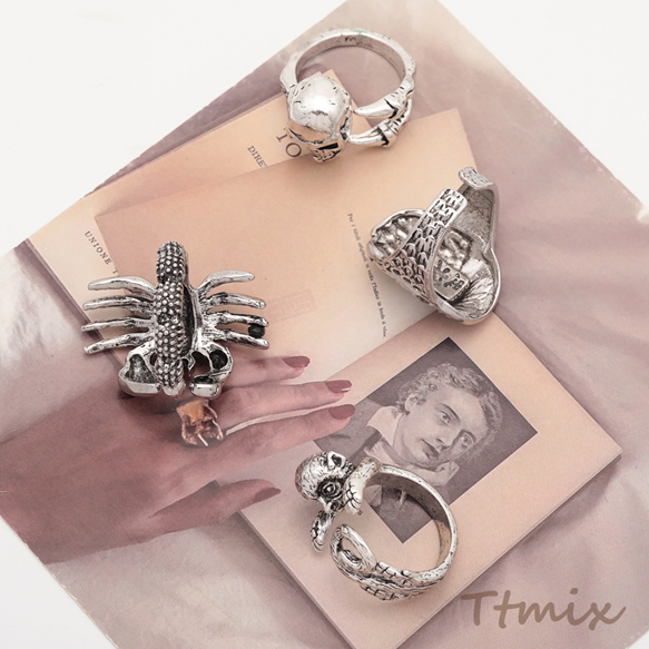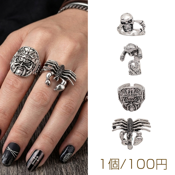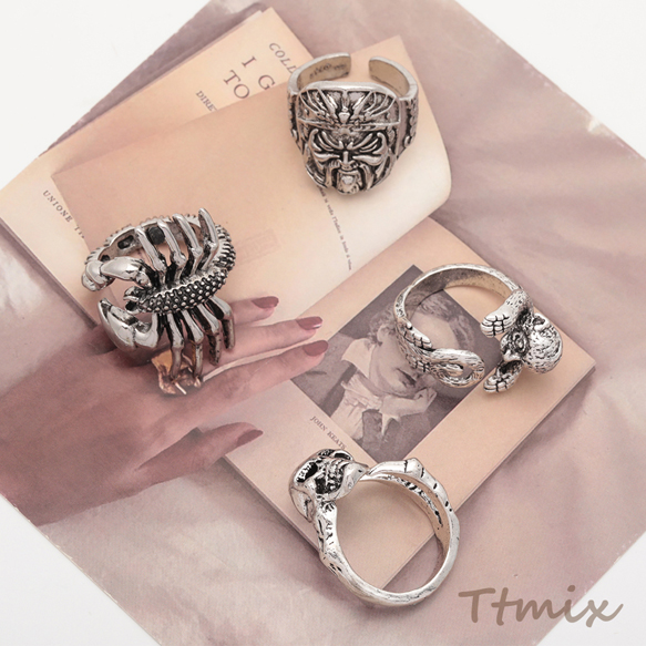 デザインリング 存在感◎ボリュームリング ヴィンテージ風 アンティークシルバー メタルリング オープンリング 全4種(1個)
