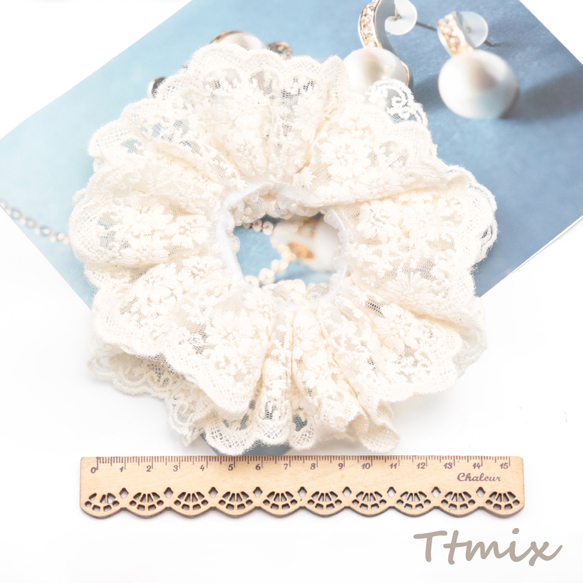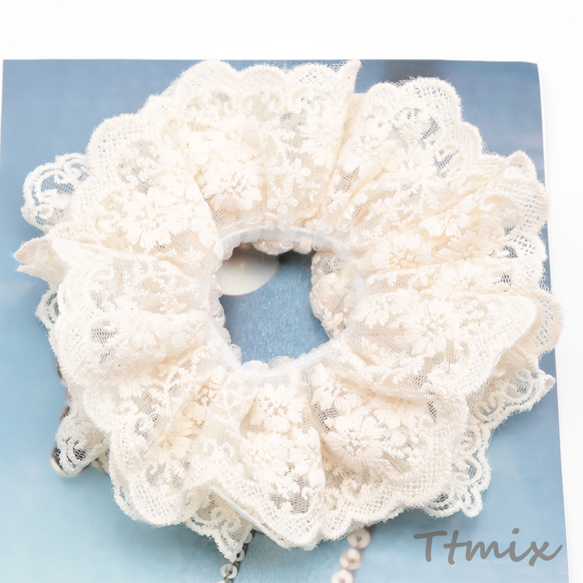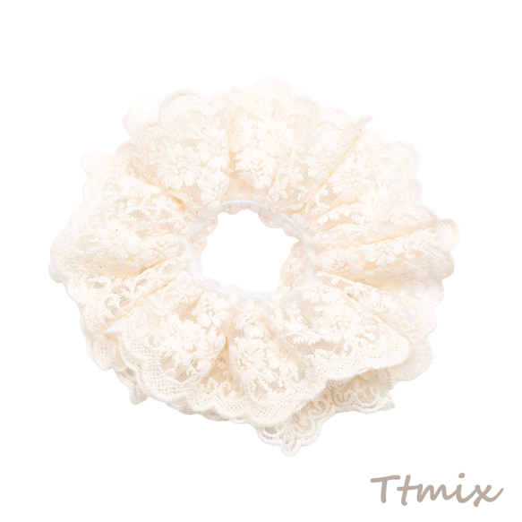 シュシュ オフホワイト 透け感 レース フラワーモチーフ 髪飾り 髪留め ヘアゴム ヘアアクセサリー(1ヶ)