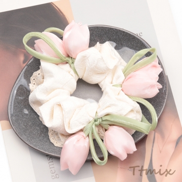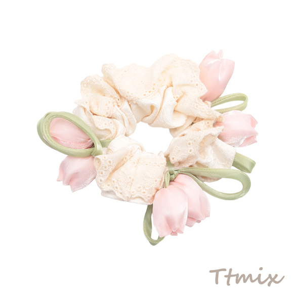 シュシュ チューリップ フラワーモチーフ フラワーレース 髪飾り 髪留め ヘアゴム ヘアアクセサリー(1ヶ)