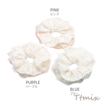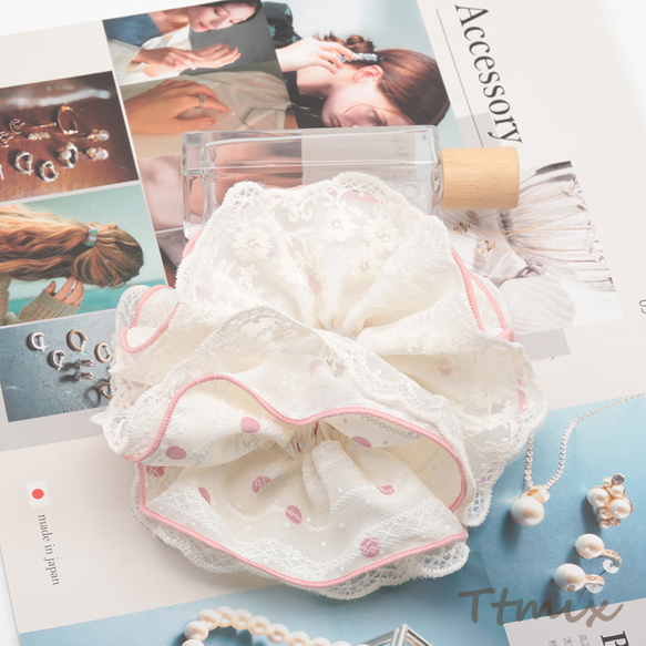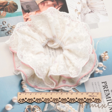 シュシュ レースフリル×ドット柄 髪飾り 髪留め ヘアゴム ヘアアクセサリー(1ヶ)