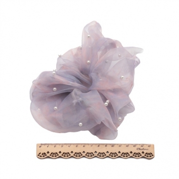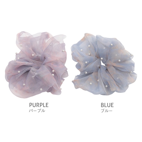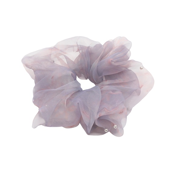 卸売シュシュ グラデーションパープル&ブルー シアーチュール パール付き 髪飾り 髪留め ヘアゴム ヘアアクセサリー(1ヶ)