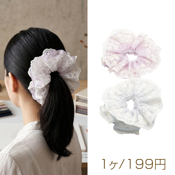 卸売シュシュ フラワーモチーフ レース×パール 髪飾り 髪留め ヘアゴム ヘアアクセサリー(1ヶ)