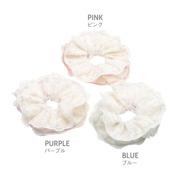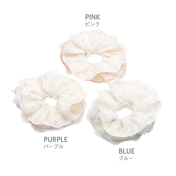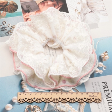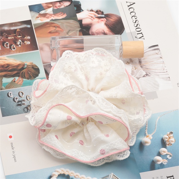 卸売シュシュ レースフリル×ドット柄 髪飾り 髪留め ヘアゴム ヘアアクセサリー(1ヶ)