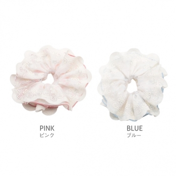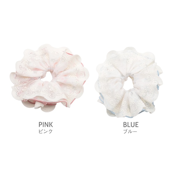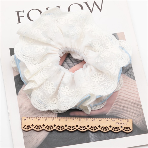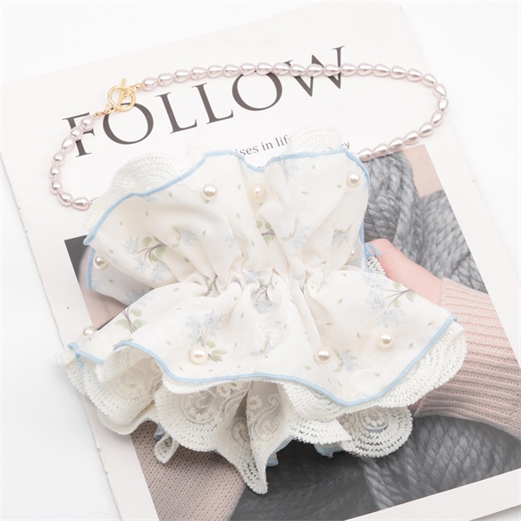 卸売シュシュ 花柄 2層レース フラワーモチーフ パール付き 髪飾り 髪留め ヘアゴム ヘアアクセサリー(1ヶ)