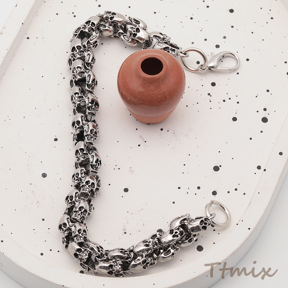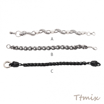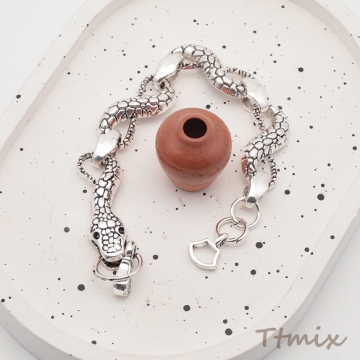 ブレスレット ヴィンテージ風 ヘビ ドクロ アンティーク調 メタルチェーンブレスレット 3種(1本)