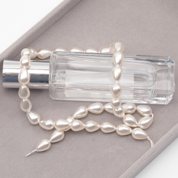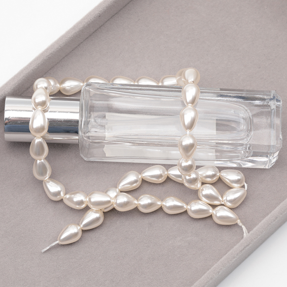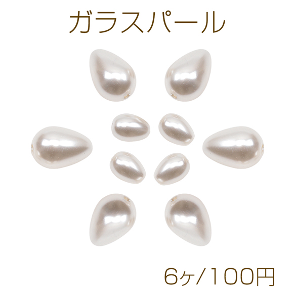 ガラスパール アイボリー しずく型 縦穴 染色 カラービーズ パール調ガラスビーズ 2種(6ヶ)