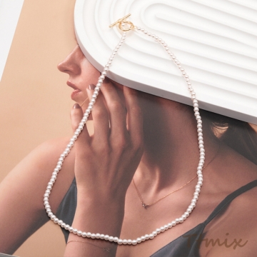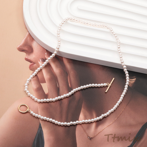 パールネックレス 高品質フェイクパール 丸玉 ガラスパール シンプル マンテル付き 長さ約42.5cm 3mm(1本)