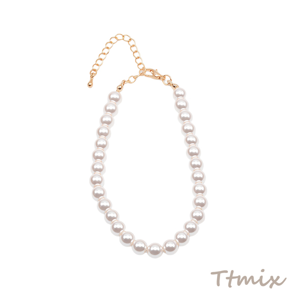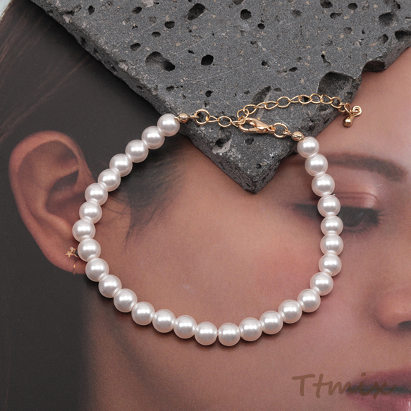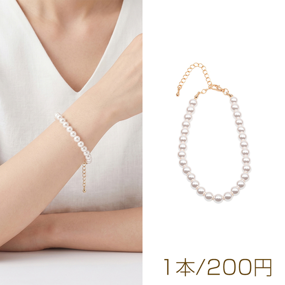 ブレスレット 高品質フェイクパール 丸玉 ガラスパール シンプル アジャスター付き 長さ約19+7cm 6mm(1本)